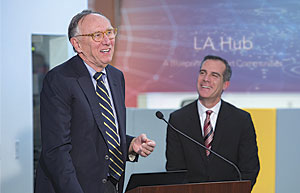 Esri president Jack Dangermond was on hand for the launch, which was held at the La Kretz Innovation Campus, the city’s cleantech industry hub. He noted that the vision that he and Garcetti shared was one in which open data grew into open services that in turn would facilitate not only better work inside the city but enable startups, nongovernmental organizations (NGOs), and citizens to incorporate geographic insights into their thinking and decision making. The creation of services enables web GIS mapping, and that is what has made this revolution in understanding possible.