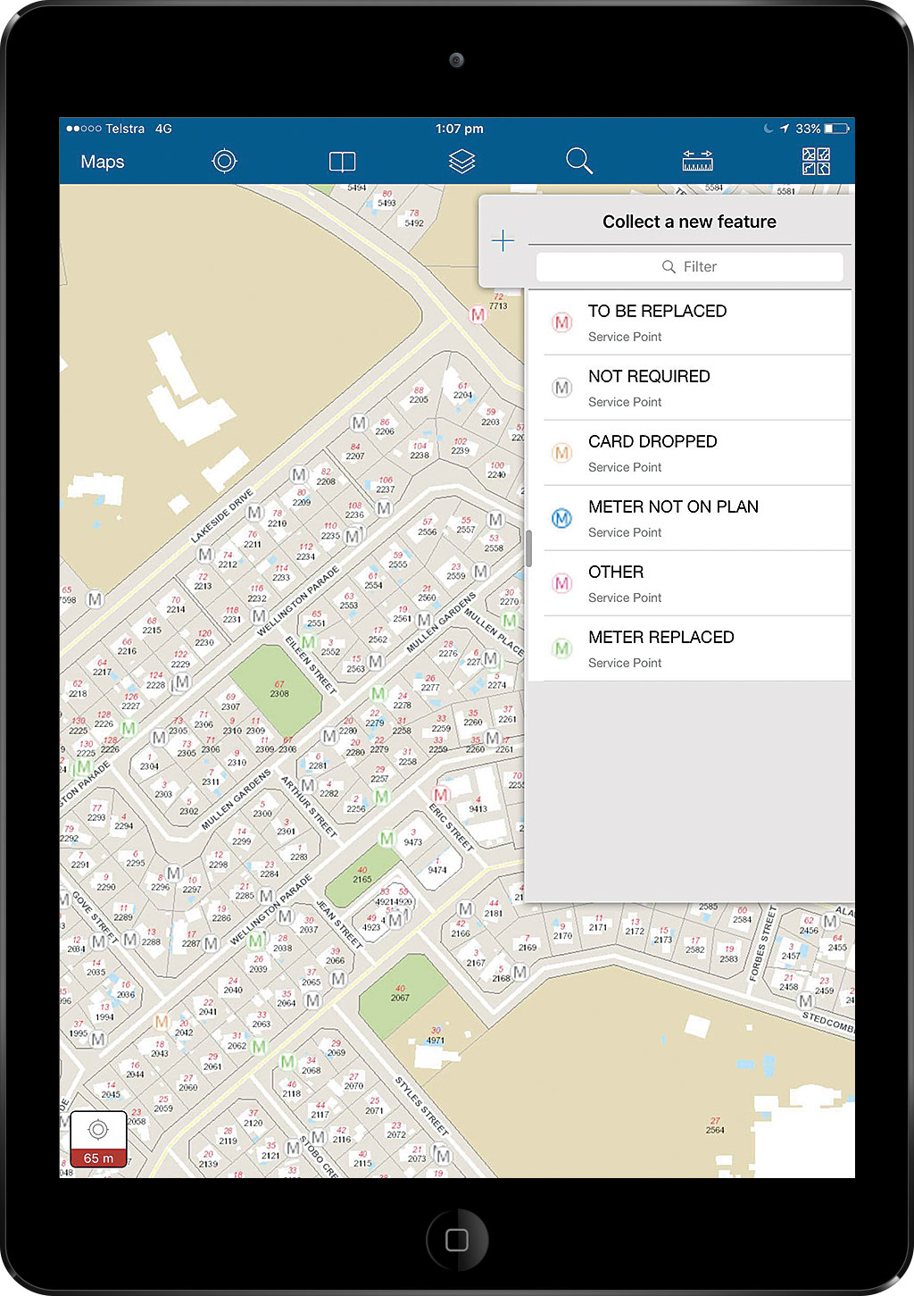 The solution was deployed on Apple iPads so staff and contractors could efficiently collect and update information in the field. Before the solution was taken into the field, the system was populated with records for the meters so that a meter’s location and other details could be verified on-site and corrected immediately if needed.