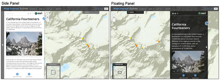You can select a side panel or floating panel layout in Map Journal Builder settings.