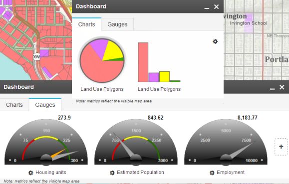 Plans and designs usually have metrics that indicate their performance or progress toward a goal. You can use GeoPlanner to create dynamic dashboards that help you visualize those metrics and measure design impacts, both qualitatively and quantitatively.