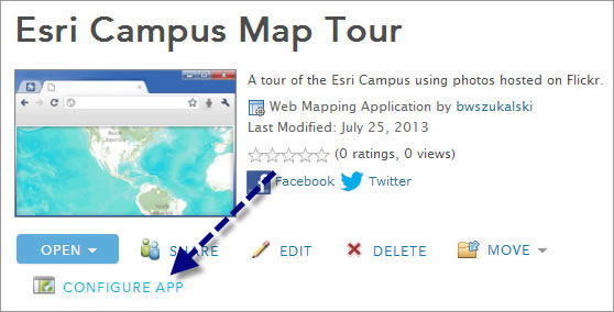 Or you can open the item later. When you are ready to add your Flickr photos, go to the item and click Configure App: