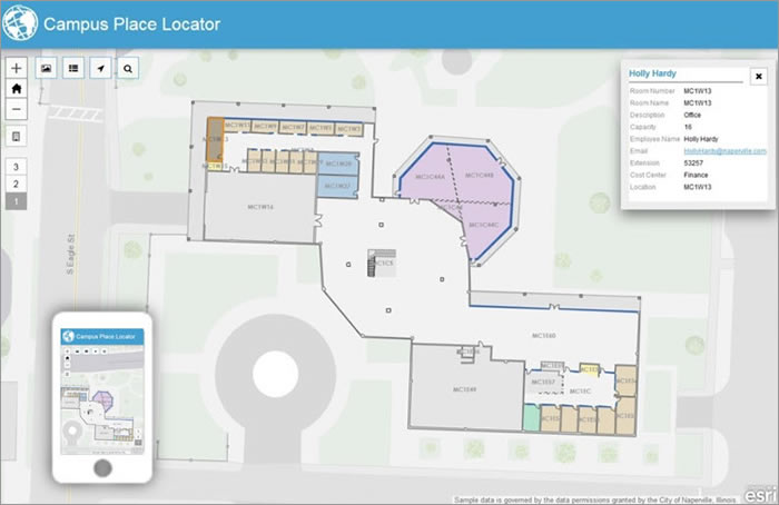 - Configurable map application templates and tools (e.g., the Campus Place Locator pictured above and this Esri Story Map Journal)