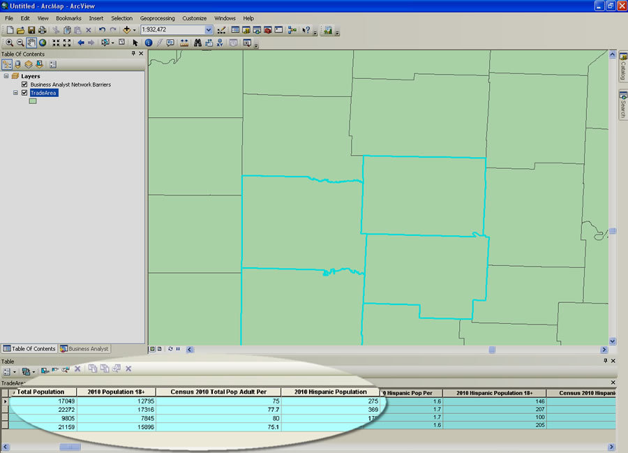 Append the latest Census 2010 data as attributes and use it to analyze areas within your jurisdiction.