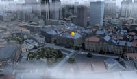 In the original storyboard, the city was defined as a skyline under the blimp where the camera captures both from a horizontal angle. The production team and the client expected the blimp to make a dramatic entrance as the camera climbed up to reveal the finale shot. But the planned shot was just too schematic. At the last possible moment, about a week and a half before airing, the decision was made to let the camera climb up higher so that a shot looking down on the blimp and city was possible. With this, the city functioned as an extra step in the growing scale of the campaign. CityEngine immediately turned out to be the only feasible solution to produce a whole city instead of just a piece of skyline. The production team was able to build the needed model in a day. The fact that parts of the Paris Example - used as a node - looks a lot like parts of an average Belgium city helped to speed up the overall production. Both client and agency were immediately convinced that the shot worked much better this way.