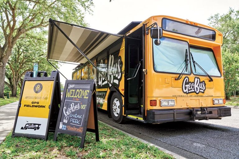 That’s when Hawthorne got the idea for a “geobus.” He couldn’t find anything like that in the United States, but he did find Columbia University’s BioBus, a mobile science lab that serves young people in New York City. So he connected with the team there and met with others in the mobile lab community to get ideas for how to build his bus. All this came together around the time he moved to UCF, however, so momentum waned for a while.