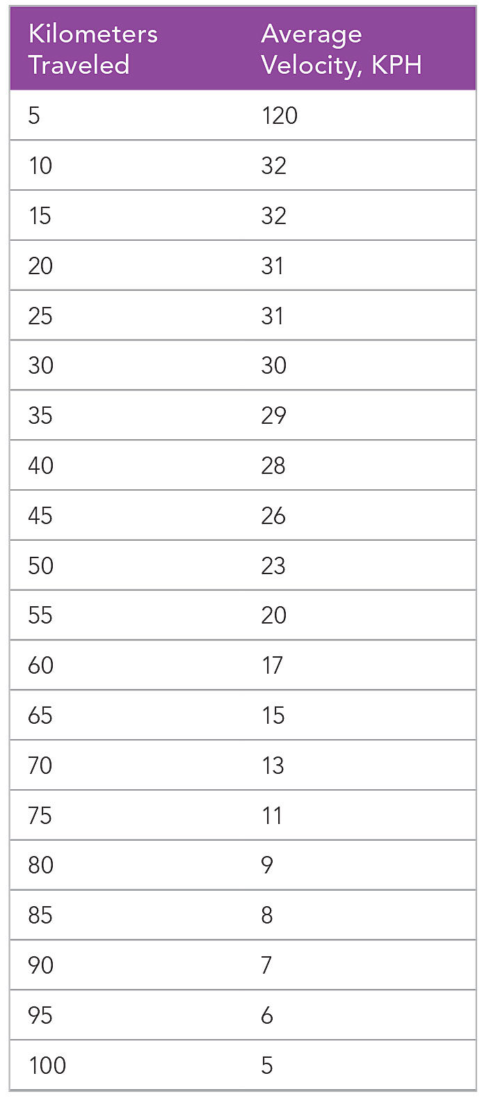 The model velocities that will be used to determine lahar timing are derived from studies of lahars on the North and South Forks of the Toutle River that were created by eruption of Mount Saint Helens on May 18, 1980. Dr. T. C. Pierson, a research hydrologist at the US Geological Survey’s Cascades Volcano Observatory, studied the Toutle River debris flows and developed distance-based velocities for a typical Cascade volcano lahar. His findings were published in a 1998 paper called An empirical method for estimating travel times for wet volcanic mass flows. Pierson’s findings are summarized in Table 1, which lists estimated velocities based on distances below the origin. These values were used to set velocities for selected stream segments in this tutorial.