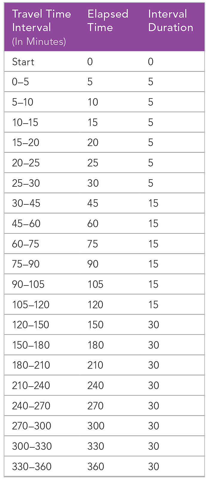 Still in the pane, under Cutoffs, accept the first three completed (5, 10, 15), type 20 in the first empty cell, and press Enter or Tab to open another cell. Continue typing values in subsequent cells under Cutoffs using the values in the Elapsed Time column of Table 2. Carefully enter these values, as they will be used in a definition query expression later in this tutorial.