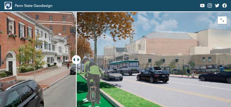 “As a student who is used to small-scale, site-specific designs, moving toward a city-scale project was a huge challenge,” said Sara Schwartz, who is pursuing a master’s degree in landscape architecture and a geodesign certificate at Penn State. “Overall, these digital tools and their features and storytelling capabilities enhanced my work and experience.”