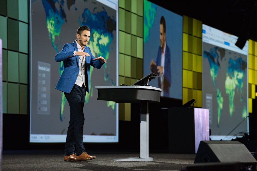 Onstage, Dangermond announced that Esri would contribute to planting 60,000 trees for the Trillion Tree Campaign, offsetting the carbon footprint of the Esri UC attendees’ travel to San Diego and making the 2018 Esri UC carbon neutral.