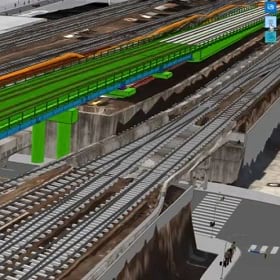 To create the 5D view, the team built cost and calendar estimates from the ground up, taking advantage of the fact that each infrastructure element on the project had a cost and activity ID assigned to it. As the digital twin moves through time and a piece of a bridge pier or a track tie is set into place, that unit is added to the cumulative cost and tied to that section of timeline, synchronizing the three main elements of project management.