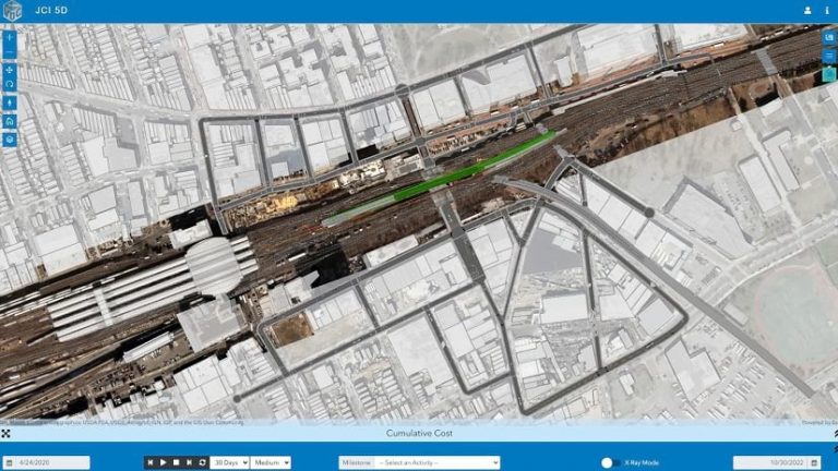 After Siegel and the HNTB team surveyed the options, they concluded that GIS was the best foundation for executing a 5D digital twin plan of the JCI project.