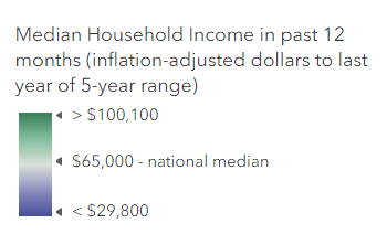 “Income in the past 12 months” is also used to determine poverty status and housing costs as a percent of income, even though it is not a field on those layers. Keep in mind that income and earnings questions in the ACS do not go by calendar years, but rather “earnings/income in the past 12 months.” If you respond to a survey in 2022, then some of your earnings took place/income was received in 2021.