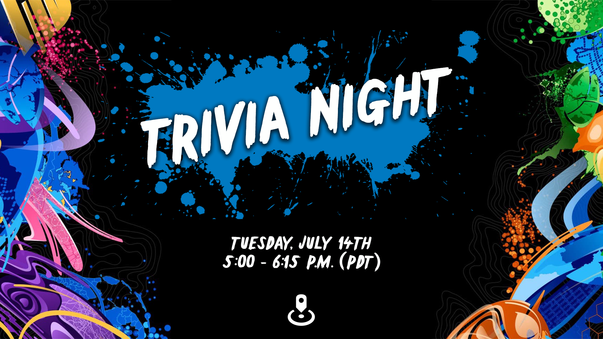At 5:00 PM (PDT), join our Trivia Night meeting by navigating to go.esri.com/ba/trivianight. The meeting room will not be active until the official meeting start time. In the meantime, please use the information below to add an event to your calendar.