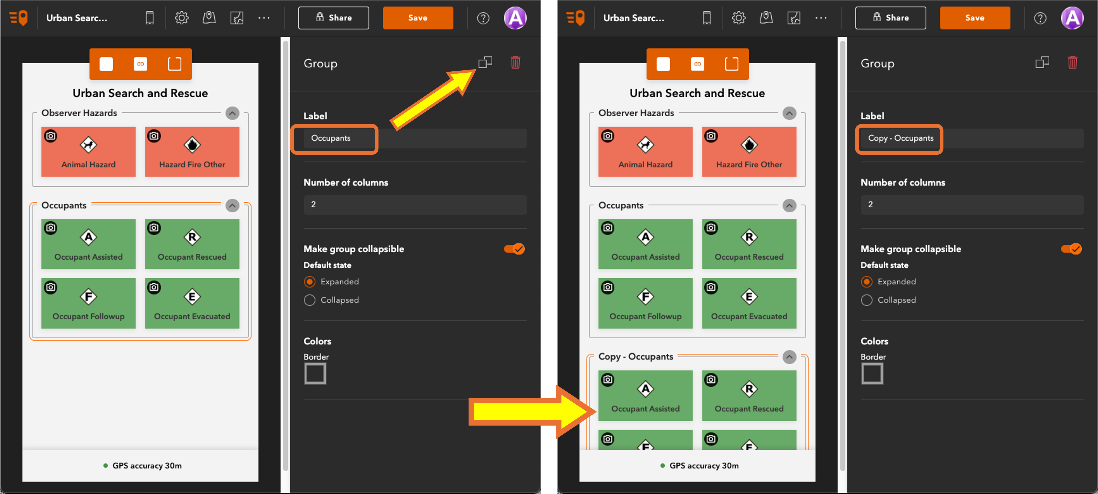 Support for duplicating groups in the QuickCapture Designer