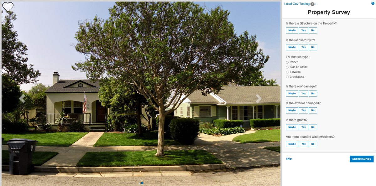 The Esri Photo Survey solution contains common inventory questions, enabling the quick creation of property inventory databases.