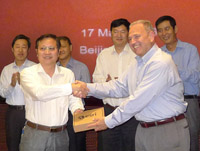 Dean Angelides, director, International Operations, Esri, and Feng Xianquang, director for NGCC, signed the historic agreement to share data with users around the world.