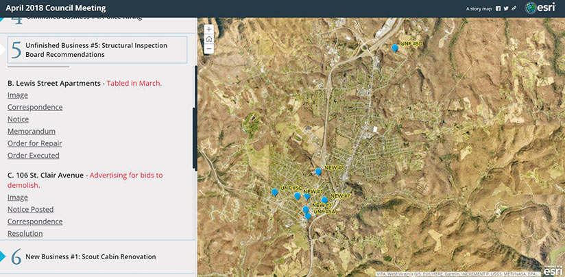 This is the story of how the manager of a small city in West Virginia came up with a big idea: Use an Esri Story Maps app to convert the city council agenda from a drab document to a lively account of municipal business.