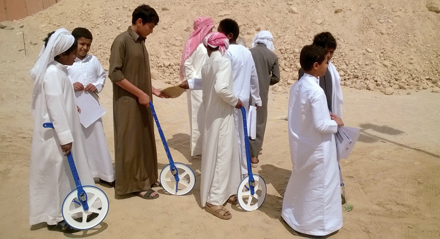 Using a measuring wheel, students measured the perimeter of the school as part of another GIS-based project.