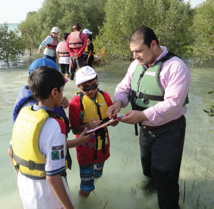 Students were very interested in collecting data about local mangrove trees and plotting that data on maps for a science lesson. Mangrove trees live in salt water along the Abu Dhabi coastline. They provide important animal habitat and erosion control.