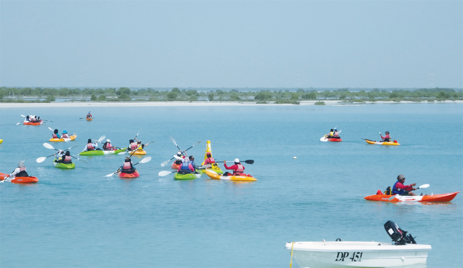 As part of a science lesson, students kayaked to Mangrove Island to collect data about the trees.