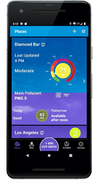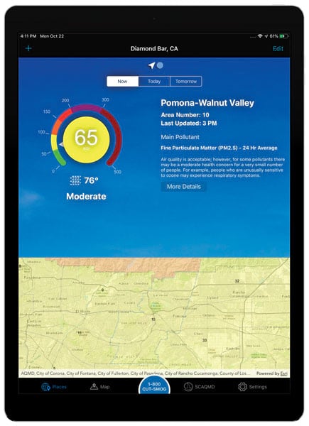 Getting accurate, up-to-date, and location-based air quality information is now just a tap away, courtesy of a new mobile app from the South Coast Air Quality Management District (South Coast AQMD). Developed in part using Esri’s ArcGIS Runtime SDKs, the South Coast AQMD app offers users air quality updates and other useful information in four Southern California counties: Orange County and major portions of Los Angeles, Riverside, and San Bernardino Counties, including the Coachella Valley.
