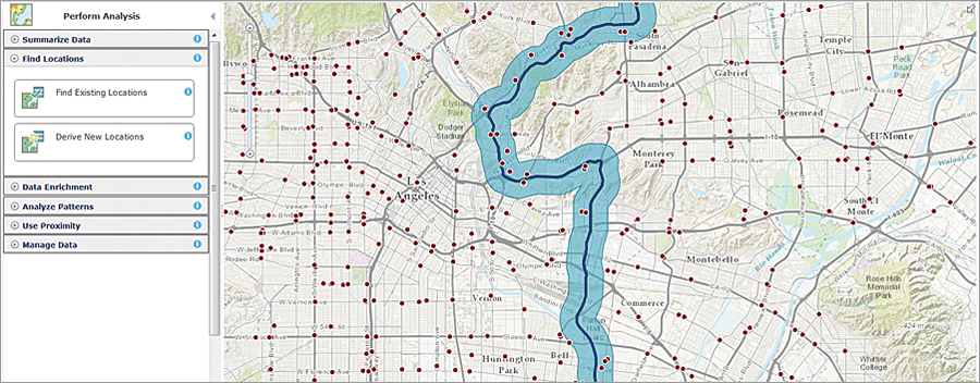 We’ve also added a new tool, Find Existing Locations, which allows you to query both spatial and nonspatial attributes in your data. And finally, you’ll now see the consumption of service credits ahead of time for Enrich Layers and Create Drive-Time Areas.