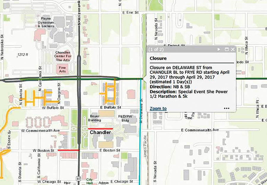 As the dialog continued, staff from the city’s communications and public affairs department met with colleagues in the information technology (IT) division to develop an online map where the public could find information about city projects and facilities—both existing and proposed. It was an effort to eliminate buyer’s remorse for those looking to live in the Chandler community.