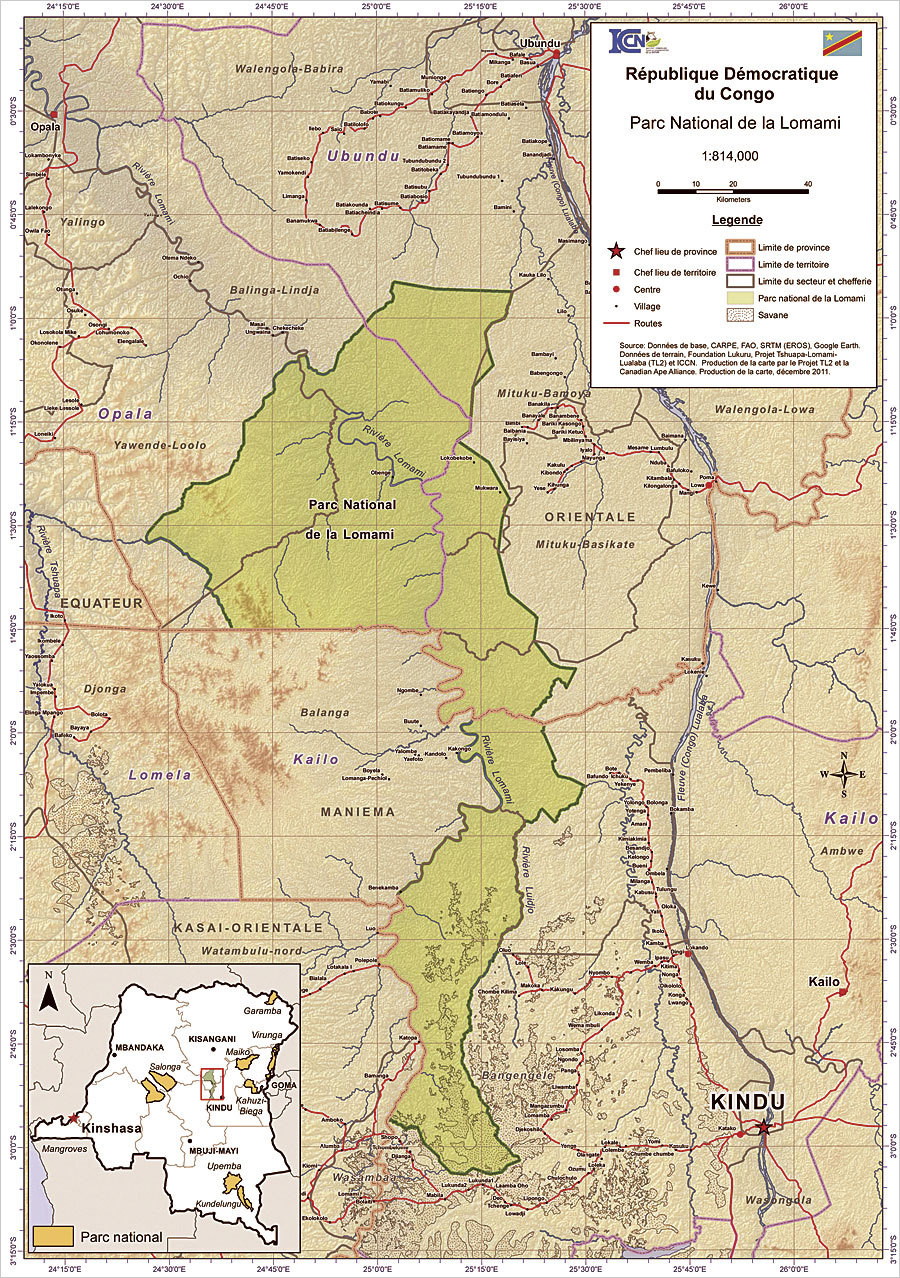 The initial expedition, called the TL2 project (named for the three rivers), was led by John and Terese Hart, whose experience in diplomacy and field research prompted them to make it a locally based undertaking. With funding from the Arcus Foundation, the Abraham Foundation, and the US Fish and Wildlife Service—along with an Esri conservation grant procured through a partnership with the Canadian Ape Alliance—the Harts composed a dedicated team of Congolese field biologists who used GIS to collect field data. As the project evolved, TL2 also used GIS to work with people from the area to delineate logical park boundaries, monitor wildlife, and establish protections for the park. Thus, Lomami became the first national park in the Congo (and one of few in Africa) to be established with major backing from local communities.
