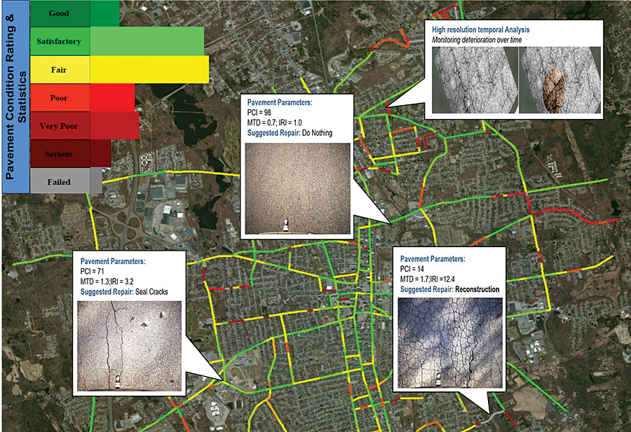 The possibility that PAVEMON—a web map that allows municipalities as well as the public to see current roadway conditions—could become a global road condition app is intriguing. Cities would no longer need to close roads for inspections, because they would have more detailed information readily available.