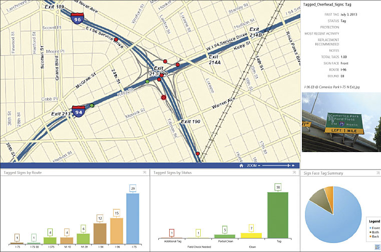 The mobile data collection was invaluable. Having a photo accompany the location data for the signs allowed the team to plan each cleaning. Knowing the extent of the graffiti and the lanes over which it occurred helped MDOT figure out how much of the road to close during the cleaning and for how long, as well as the amount of cleaning supplies that would be needed.