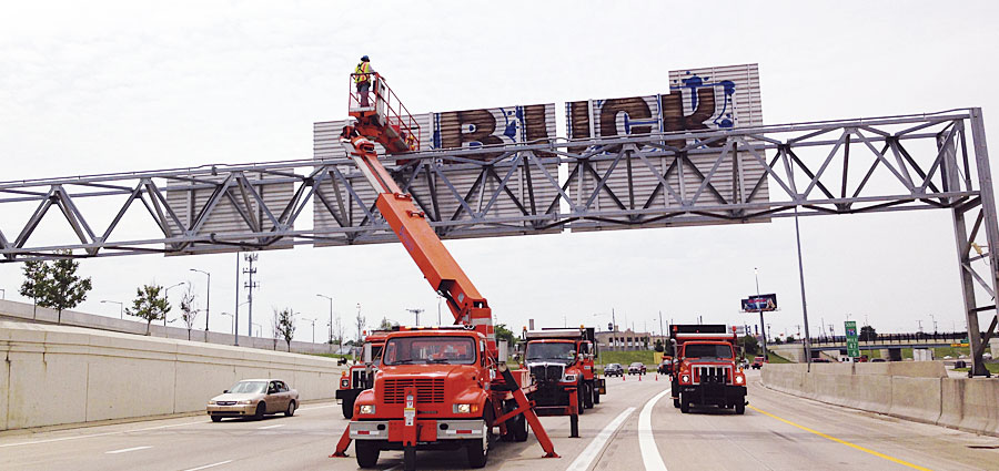 At the peak of the problem, more than 90 overhead signs were tagged along the metro Detroit freeways, creating distracting and unsafe driving conditions. Citizen complaints increased, as did political pressure to get rid of the graffiti. MDOT maintenance crews needed to find a way to efficiently clean the signs—especially the ones affixed to bridges and trusses over roadways with high volumes of traffic.
