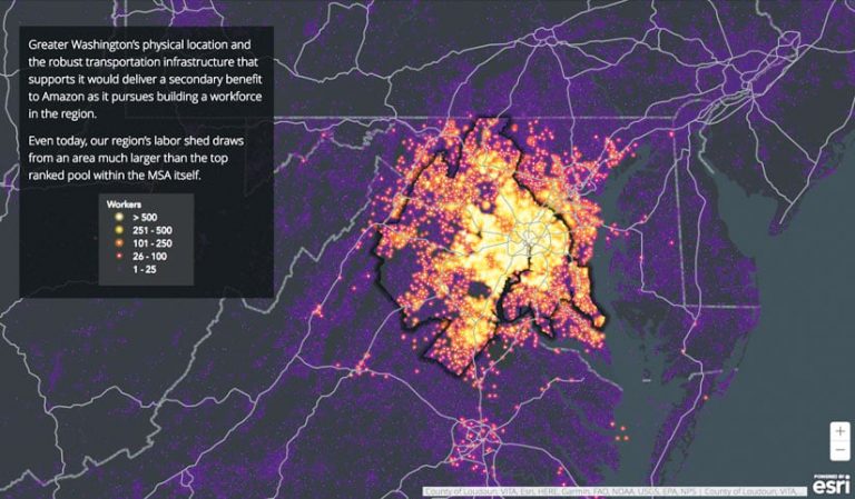 Combining sophisticated data analysis and insight with narrative text and images that harness the power of maps and geography, Datastory helps businesses make better decisions. Recently, Datastory collaborated with Montgomery County, Maryland, on its ThinkMoCo/Strength in Numbers initiative, which encourages businesses to open new offices or expand their operations in the area. Implementing Datastory’s MapDash solution along with Esri Story Maps apps transformed how the county visualizes, supports, and acts based on business analytics. Additionally, when Amazon was evaluating bids for where to open its second corporate headquarters, Datastory made it possible for the e-commerce company to experience data interactively. Featuring colorful maps and photos of neighborhoods that exhibited workforce information, transportation routes, and housing trends, the story map that Datastory put together showcased Montgomery County’s commitment to growth and sustainability. (Read more about this project in ArcNews.)