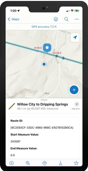 When inspecting assets along roads, railways, and utility lines, mobile workers often need to describe where the infrastructure is located by taking measurements from a fixed point using a linear referencing system. Now, Field Maps can find the measurement nearest to a mobile worker’s location or search for locations anywhere along a line. Found measurements like this can be captured by mobile workers when collecting information. They can also be used as destinations for driving directions or navigated to by using a compass.