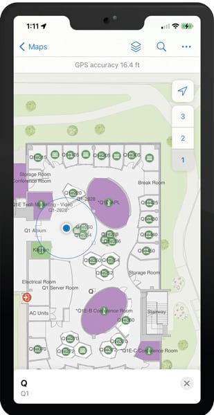 Field Maps is keeping pace with this demand. The app can leverage the ArcGIS Indoors model and is floor aware, meaning mobile workers can view indoor maps and filter information by floor. It is also possible for users to create floor-aware data and see their indoor location using IPS beacons, which is useful for conducting indoor asset inventories or fire safety inspections.