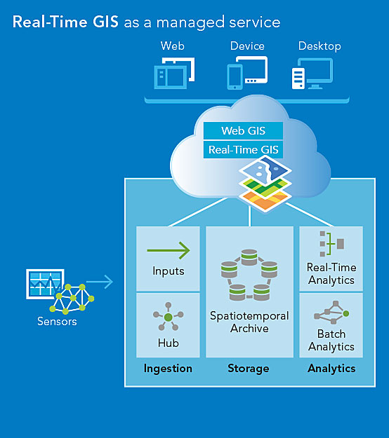 This new managed service for Real-Time GIS has a distributed computing architecture designed to support the volumes of data produced by the emerging constellation of connected devices and sensor technologies that compose the IoT.