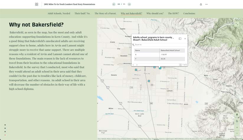 Young leaders often find themselves overshadowed by adults. But 2892 Miles to Go gives young people a platform to voice their concerns effectively. By integrating GIS into our learning, we can break through systemic and societal barriers to drive impactful change in our communities.