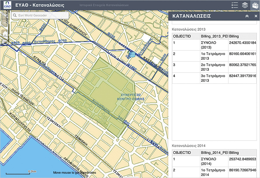 “On Saturday night at 2200 [10:00 p.m.], a water network failure in the center of the city occurred, where hotels, restaurants, and bars are located,” said Eleni Karlafti of EYATh’s water network operation and maintenance department. “With mobile GIS, I had all the necessary information in my mobile phone…to fix the failure on-site, without [needing to drive] to the office and back, managing to [reduce the] time of water interruption in the area and, consequently, minimizing citizen annoyance on a Saturday night.”