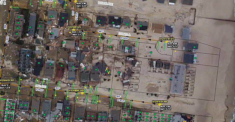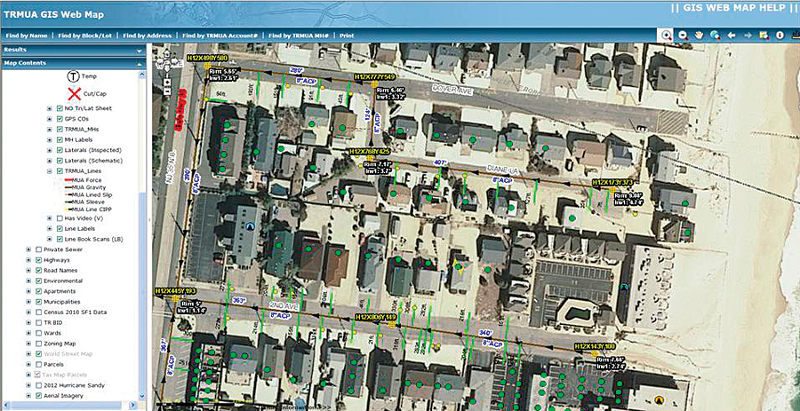 Otten says he can now view maps of all 430 miles of pipe, 9,600 manholes, and 18 pump stations, along with all attributes. At a glance, he can see whether a pipe or manhole has been inspected or rehabilitated and then simply click to view an inspection report or video. He can access various aerial maps, including post-Hurricane Sandy and aerial basemaps from as far back as 1930. He can tell when a service lateral has been cut and capped and see the triangulated location sketch of the curb cleanout.