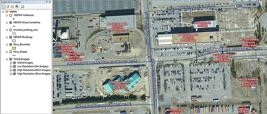 This addressing gives both the navy and local governments a set of 911-compliant addresses and topologically correct street maps for every place on military bases.