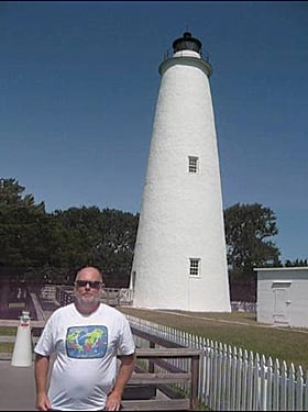 Steve Gochenaur, GISP, GIS analyst, Lancaster County GIS, Lancaster, Pennsylvania, is wearing his oldie-but-goodie Esri T-shirt at the lighthouse in Ocracoke, North Carolina. His family vacations on the Outer Banks every year.