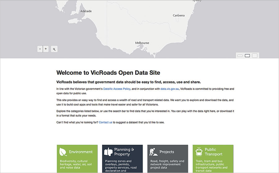 VicRoads, the road and traffic authority for the State of Victoria, Australia, was the first Victorian government agency to launch an ArcGIS Open Data site. With information about road projects, traffic, public transportation, and vehicle registration and licensing, the site highlights the agency’s commitment to open data and prompted several other agencies to follow suit.