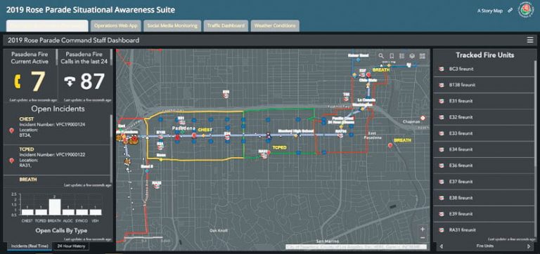 After all the New Year’s celebration events, the Pasadena Fire Department conducted a postincident analysis. It concluded that use of the ArcGIS platform contributed to the success of this year’s events and is an effective way to provide real-time situational awareness. Modern technology enhanced the strategic and tactical objectives associated with this year’s Rose Parade, the Rose Bowl, and all pre- and postevent activities, and it will be used going forward into 2020 and thereafter.