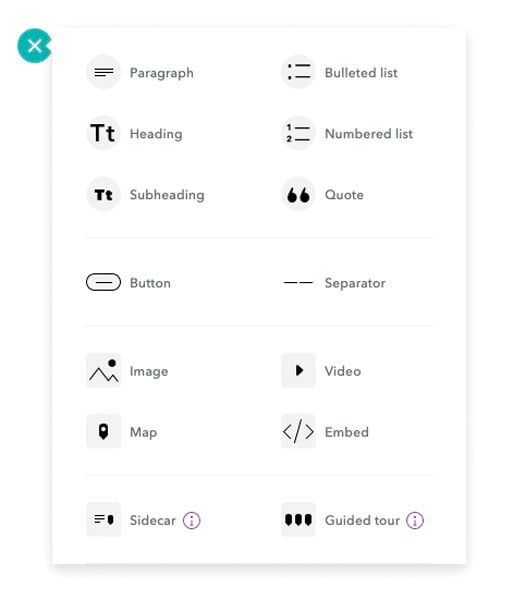 ArcGIS StoryMaps doesn’t have templates. Instead, users build stories intuitively and on the fly using the block palette. It lets users create compelling narratives by adding headings, paragraphs, bulleted lists, and quotations using a simple plus (+) button.