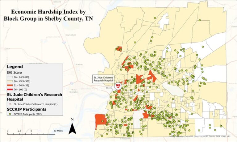 “ArcGIS was also used to analyze how living in a [census block group] with a higher level of economic hardship—including crowded housing, poverty, unemployment, low educational attainment, and alcohol or drug dependency—impacts adherence to SCD-related medication,” Hodges said. “Our analysis found that participants living in [census block groups] with greater hardship had evidence of lower medication adherence as assessed by certain lab biomarkers.”