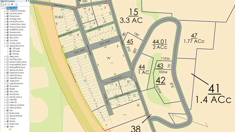 When traversing a parcel, Stephens gets a digital computer-aided design (CAD) file from surveyors including the state’s plane coordinates so that, when imported into ArcGIS Pro, the property lines are aligned. Previously, there were multiple steps in between. Every day, he reconciles his work with an update to the state’s database in Nashville.