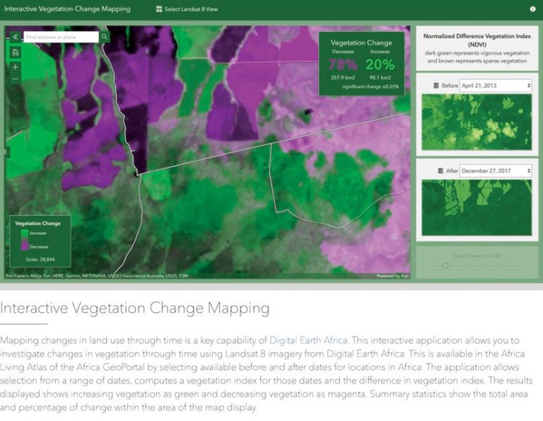 One area that Digital Earth Africa is currently focused on is food security. It has tailored some of its satellite imagery so users can visualize land-use change over time.