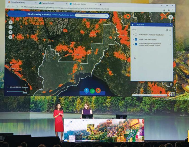 “Using Microsoft cloud computing and Esri’s modern [GIS] tools, we are able to generate, analyze, and share biodiversity data at a pace and scale never before possible,” said Healy Hamilton, NatureServe’s chief scientist. “We’ve produced detailed maps of the geographic distribution of over 2,000 species at risk—plants and animals, vertebrates and invertebrates, both aquatic and terrestrial. We’ve stacked these maps to see what we’ve never seen before. We can identify the places that matter for sustaining our nation’s biodiversity.”