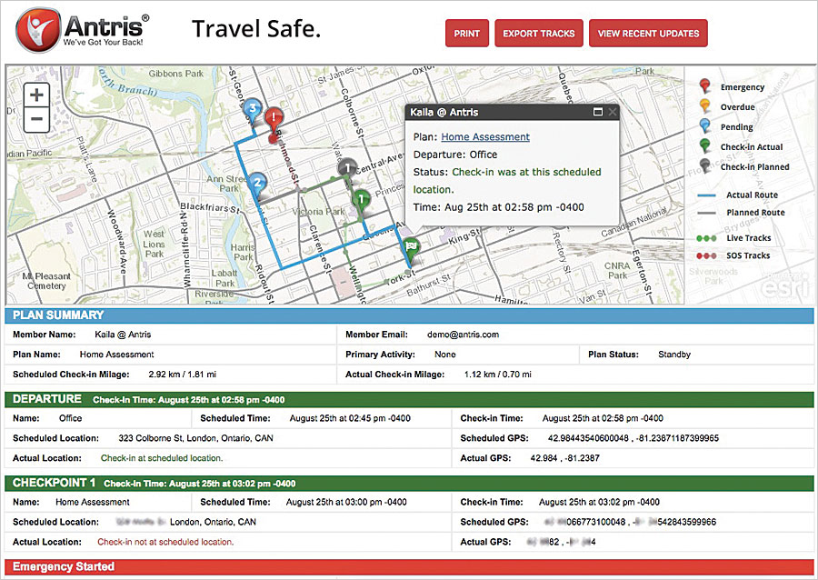 Unlike other fieldworker safety solutions that require investment in special devices, AntrisPRO leverages ArcGIS API for JavaScript to communicate with commonly used mobile devices, including iOS and Android smartphones, laptop and tablet computers, satellite phones, and GPS messengers. Because it is a cloud-based solution, AntrisPRO integrates with ArcGIS Online to ensure that basemaps are always accurate and up-to-date. Users can also share their own ArcGIS Online content with the app.
