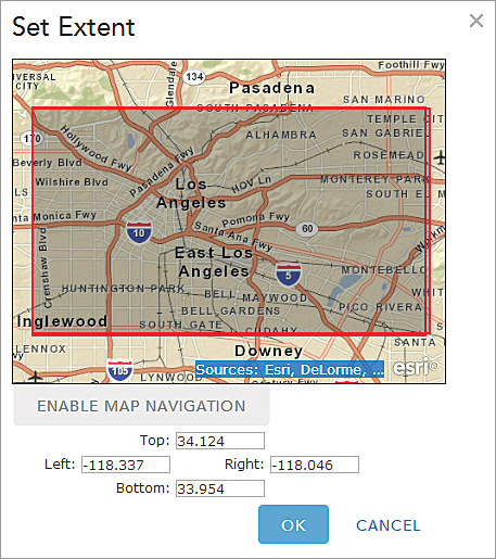 4. To draw the extent interactively, click Draw Extent and create a rectangle that encompasses the desired extent. Click Save.