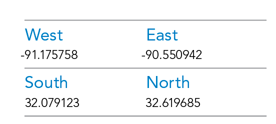 - Set the minimum Appropriate Scale Range to 1:500,000 and the maximum to 1:5,000. Click New Bounding Box. For Bounding Box, click New Bounding Box and type the coordinates in Table 2.